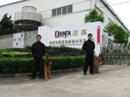 2015年8月 公司與深圳順嘉高新建材簽訂保安服務合同,共計人數50人。警犬守護2名。