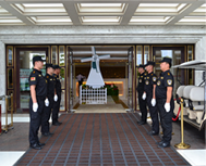 軍事化的管理 統一的服裝、警械配備;嚴格的警衛制度、規范的軍事訓練、統一的內勤管理;嚴謹的巡崗查崗監督制度、規范的獎懲考核制度。形成隊伍六規范:軍事訓練規范、內務衛生規范、執勤上崗規范、儀容儀表規范、文明用語規范、熱情服務規范。